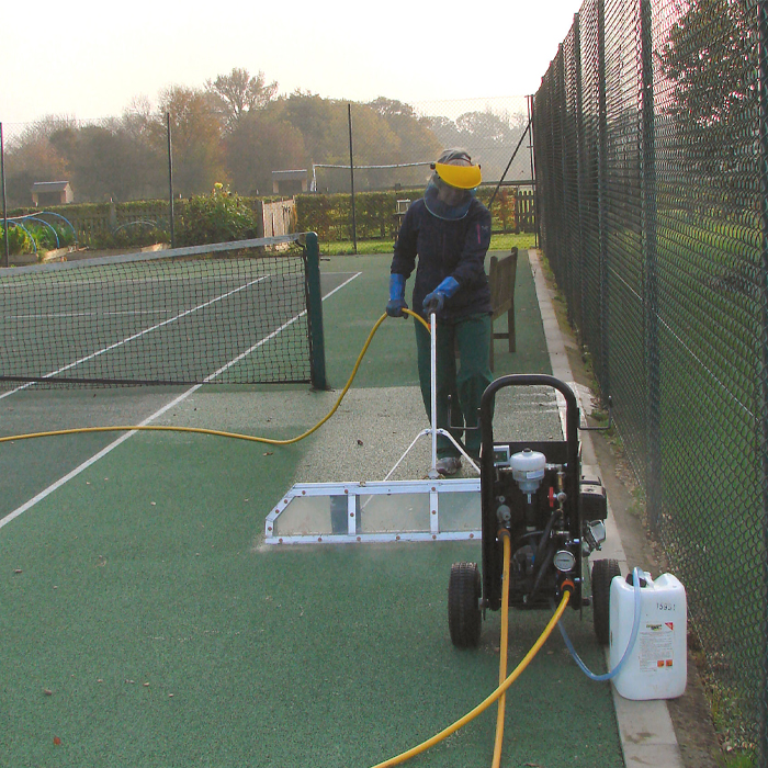 Artificial surfaces and sports areas can accumulate algae, dirt, and organic contamination, particularly in outdoor environments exposed to moisture. This can affect both appearance and usability if left untreated.