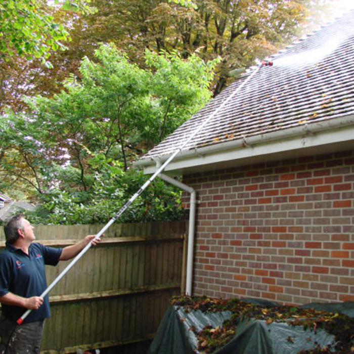 Roof softwashing with AlgoClear Pro provides a professional-grade approach: a high-strength biocide active that safely and effectively removes organic contamination without the high-pressure impact of power washing.
